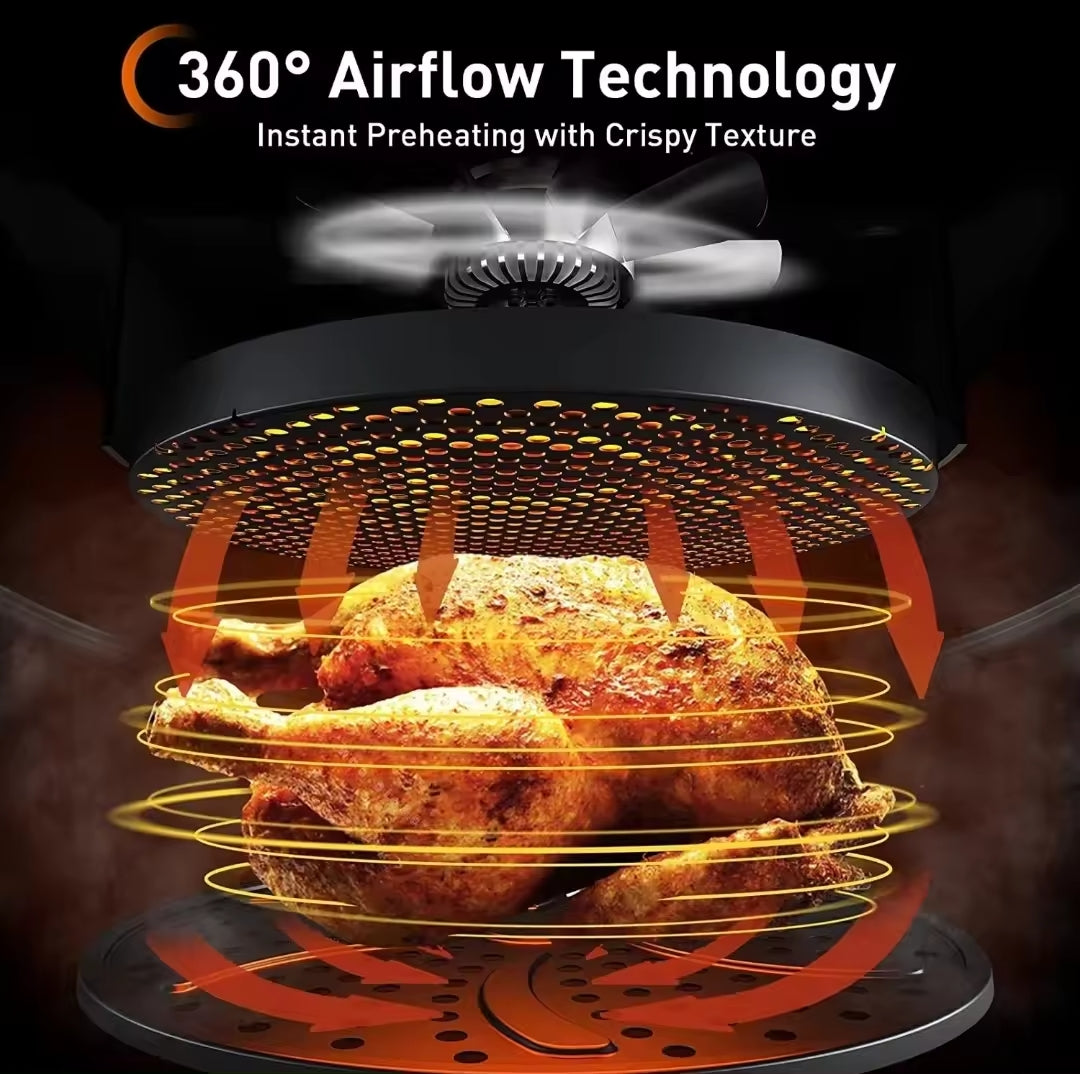 - RÁPIDO, Sabroso y saludable: la circulación de aire caliente de 360° proporciona un sabor crujiente, lo que reduce la grasa en un 93% y reduce el tiempo de cocción en un 30% en comparación con los métodos de fritura tradicionales. Por favor, aspira la ventosa en la parte inferior de la freidora de aire caliente sobre la mesa para fijar la freidora de aire caliente y evitar que se mueva cuando la freidora de aire caliente se enciende.