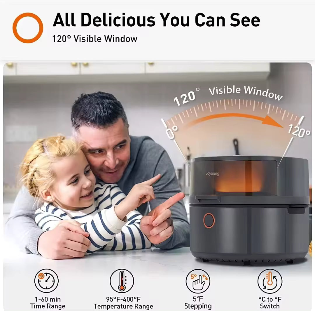 JOYOUNG Air Fryer - Freidora de aire caliente (10 programas, 5,5 L, con ventana visible de 120 grados)
