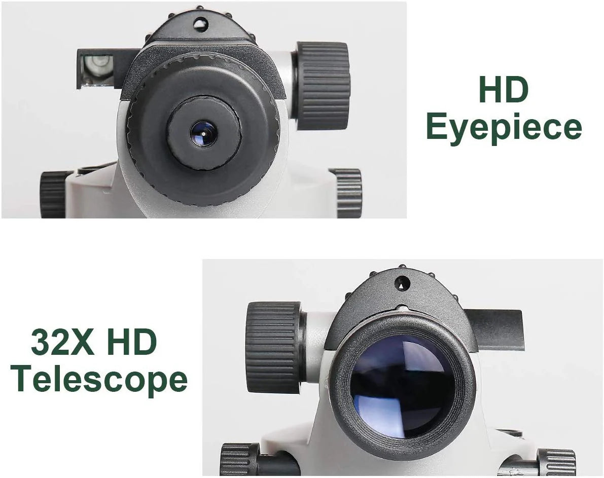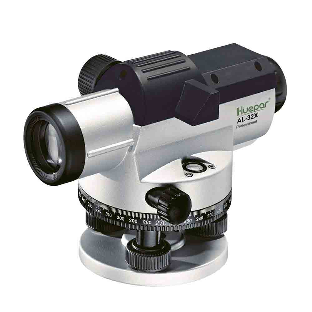 - El nivel óptico automático AL-32X de Huepar tiene una lente de gran apertura de 32x que permite una mayor iluminación para obtener una imagen más nítida y un excelente aumento.