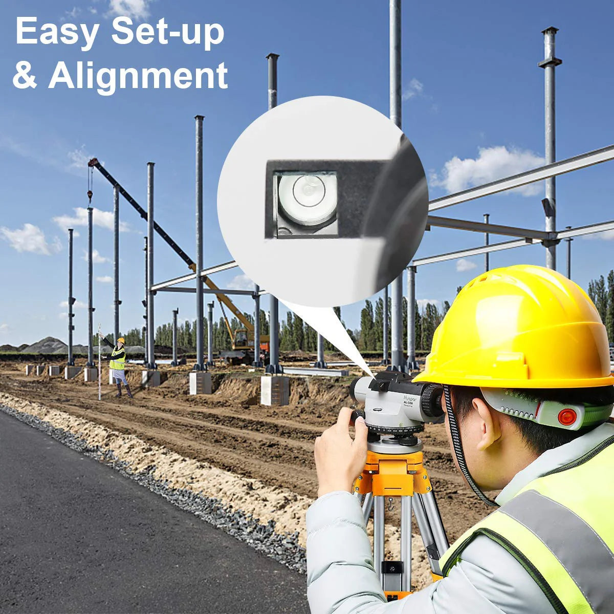 - FÁCIL CONFIGURACIÓN Y ALINEACIÓN: Este nivel automático de alto rendimiento tiene tres tornillos de nivelación de precisión y un prisma de 90 grados para alinear rápidamente la ampolla de burbuja circular para configurar la herramienta de nivelación. La sólida base metálica del nivel ofrece una rosca de montaje de 5/8" para fijarlo en un trípode. El punto de mira rápido de montaje superior permite ver rápidamente la varilla de nivelación. Después de la instalación y la calibración, los usuarios pueden ajustar la perilla de enfoque para enfocar rápidamente y luego comenzar a medir.